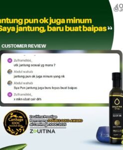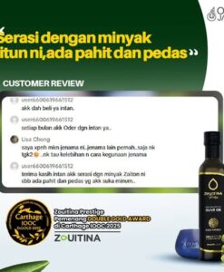 Minyak Zaitun – Zouitina Prestige Extra Virgin Olive Oil (250ml)”Bila rasa mendapat pengiktirafan dunia… anda tahu ia bukan biasa-biasa.”